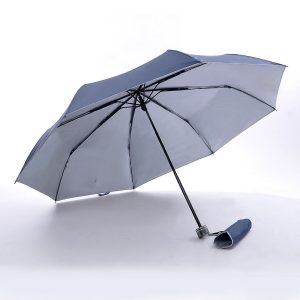 21" x 8 panels, 3 fold, black metal shaft, UV coated on interior panels, windproof foldable umbrella with cloth sleeve.