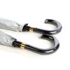 24" x 8 panels, auto open, black metal shaft, non-UV coated, silver curve handle umbrella with 210 nylon pearl sheen fabric.