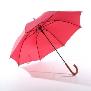 24" x 8 panels, black metal shaft, auto open, non-UV coated, solid color, 190T imitation nylon fabric material, with real wood curve handle long umbrella.