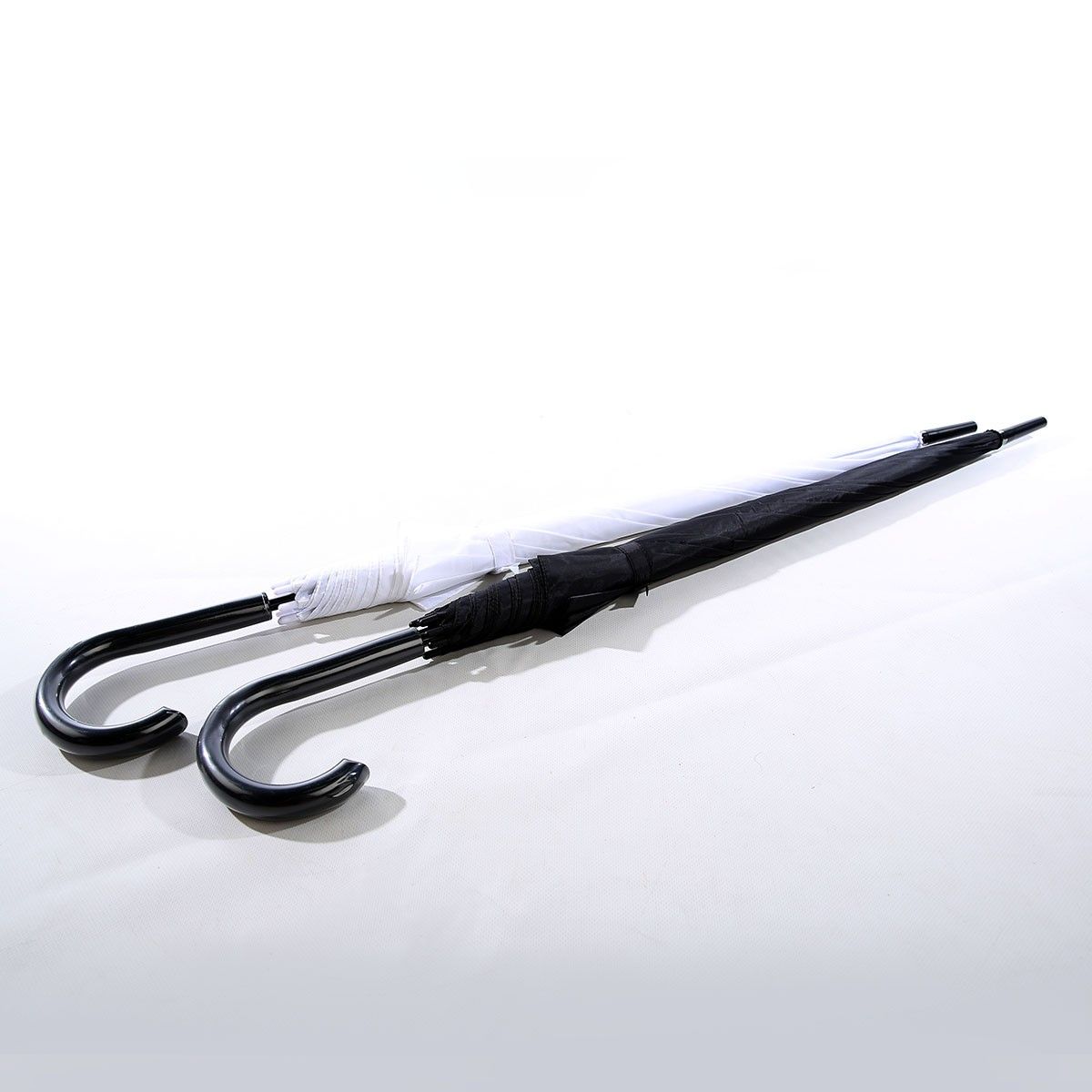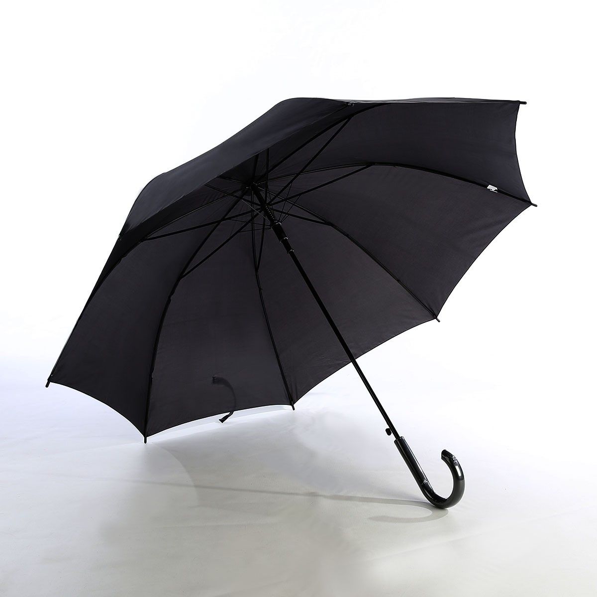 27" x 8 panels, auto open, black metal shaft, non-UV coated, solid color, 190T imitation nylon fabric material, with black curve handle extra long umbrella.