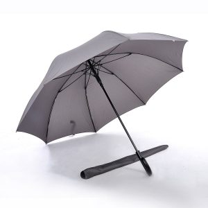27" x 8 panels, auto open, black metal shaft x fibre glass ribs & frame, non-UV coated, solid color with Black metallic button and Black curve handle extra long umbrella.